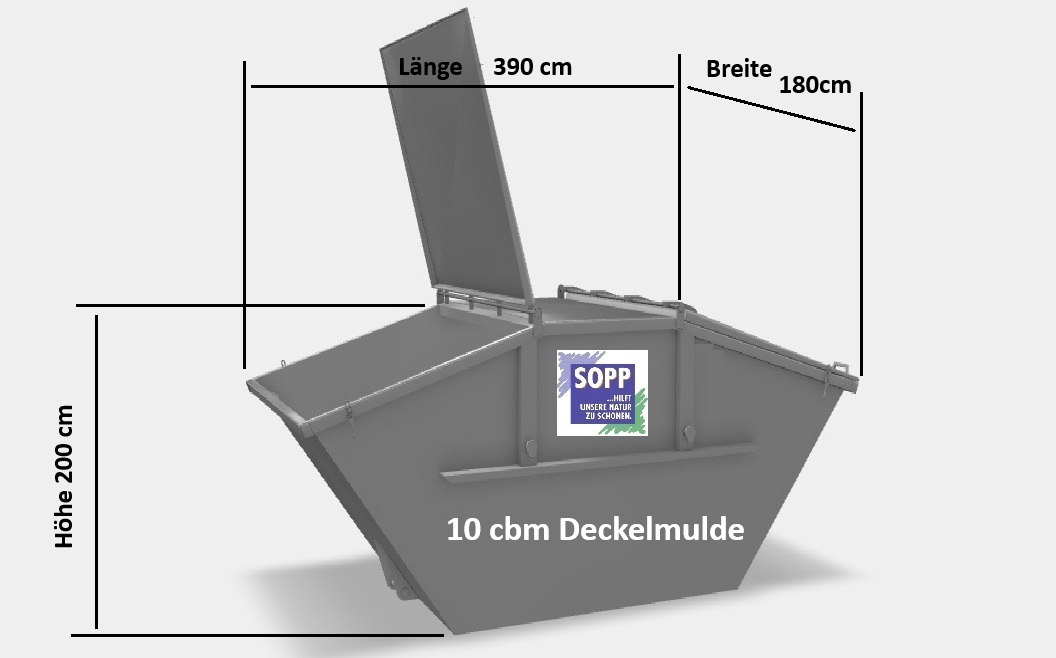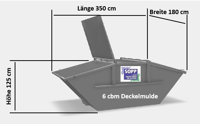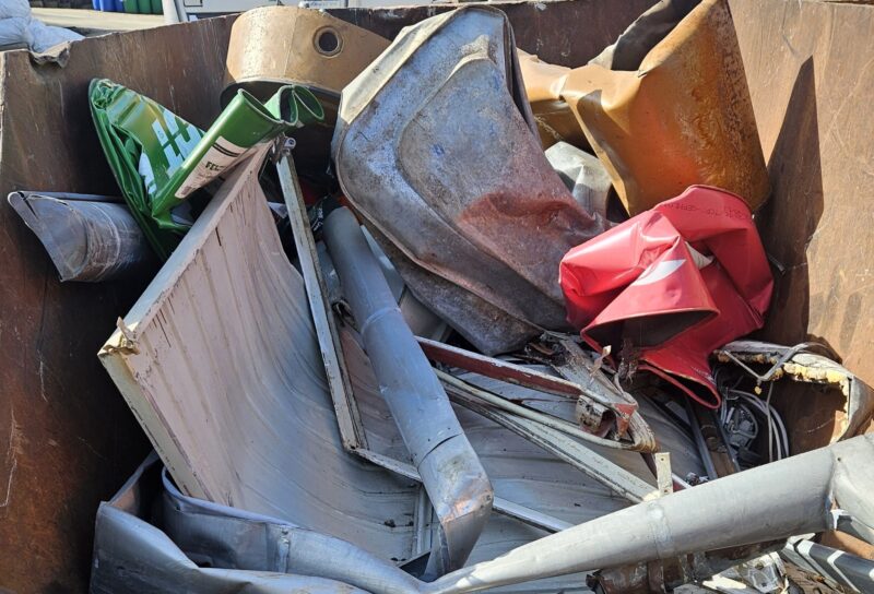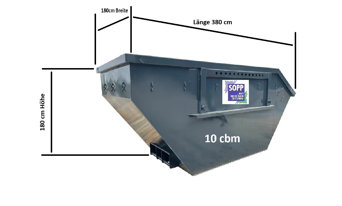 Tapeten, Holz, Rohre, Metall, Kunststoff. Es kann all das rein, was bei Baumaßnahmen eines Hauses anfällt, außer gefährliche sowie Sonderabfälle (z.B. Dämmung oder Dachpappe)