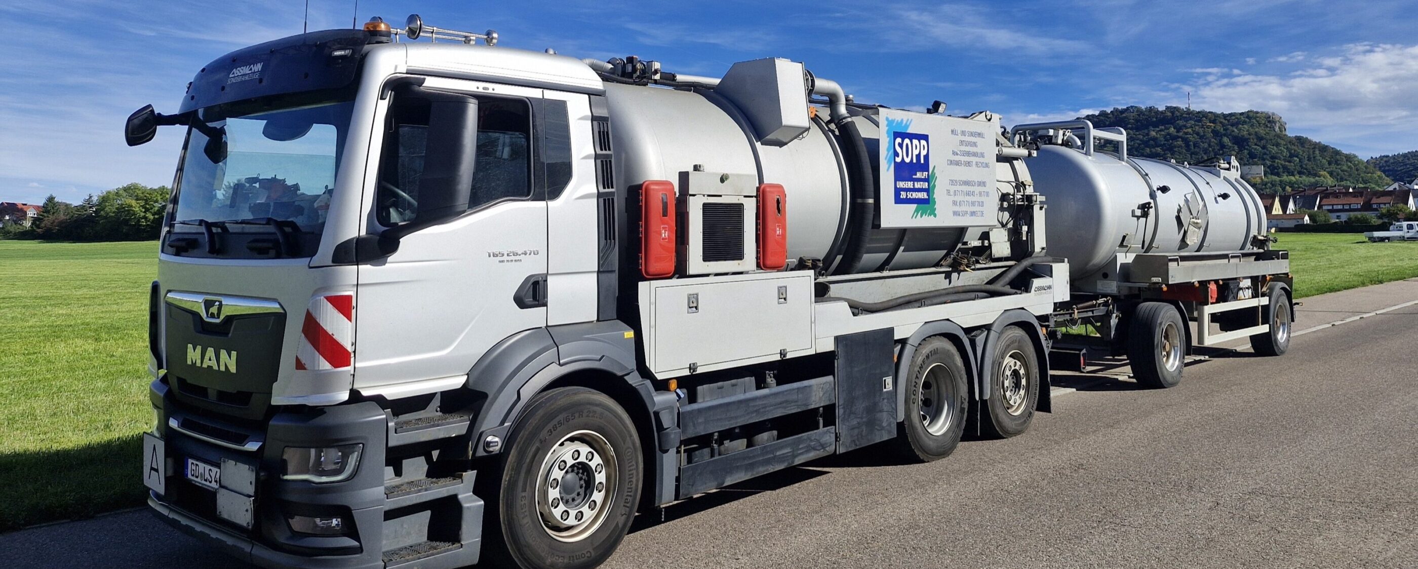 Unser Fuhrpark umfasst ein Saug-Druck-Fahrzeug mit Anhänger (Volumen: 21 Kubikmeter) für die Entsorgung flüssiger Abfälle und Industrieabwässer aus Kantinen, Gastronomie und Metzgereien, KFZ-Werkstätten und Waschstraßen.Für kleinere Mengen stehen Gebinde von 60 bis 200 Litern zur Verfügung, größere Mengen decken IBC-Container in Größen von 500 bzw. 1000 Litern ab.Sonderabfälle festAbsetzkipper: